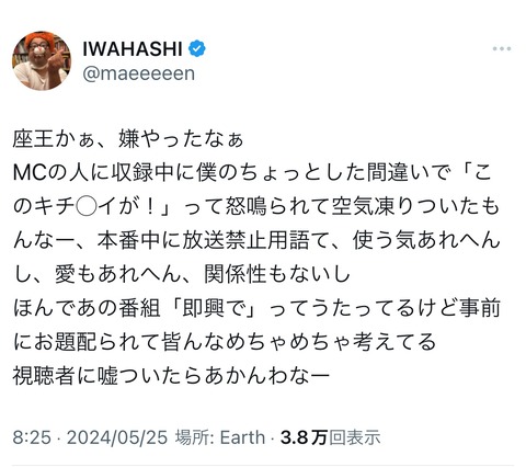 【悲報】プラスマイナス岩橋さん「スタッフにフルボッコされたから今日の暴露はツイ消しした」