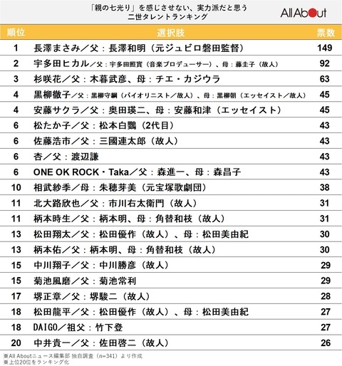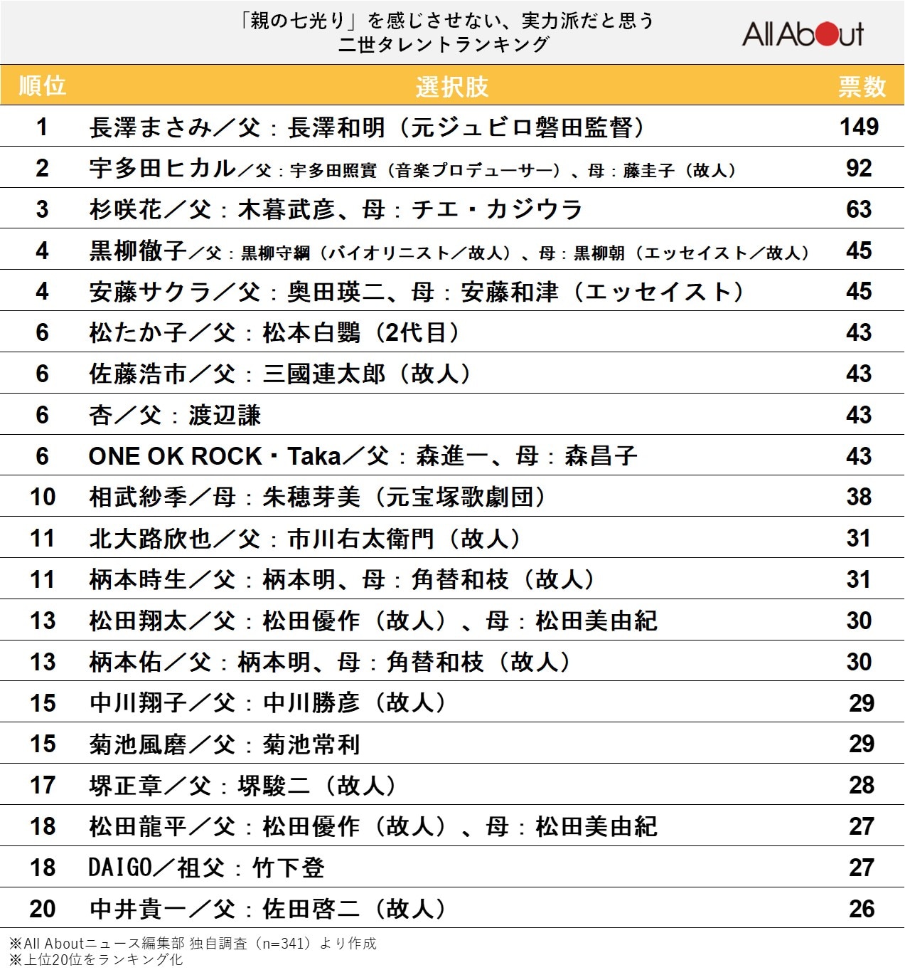 All About ニュース編集部は10月3日~11月2日の期間、全国10~70代の341人に「二世タレント」に関するアンケートを実施。