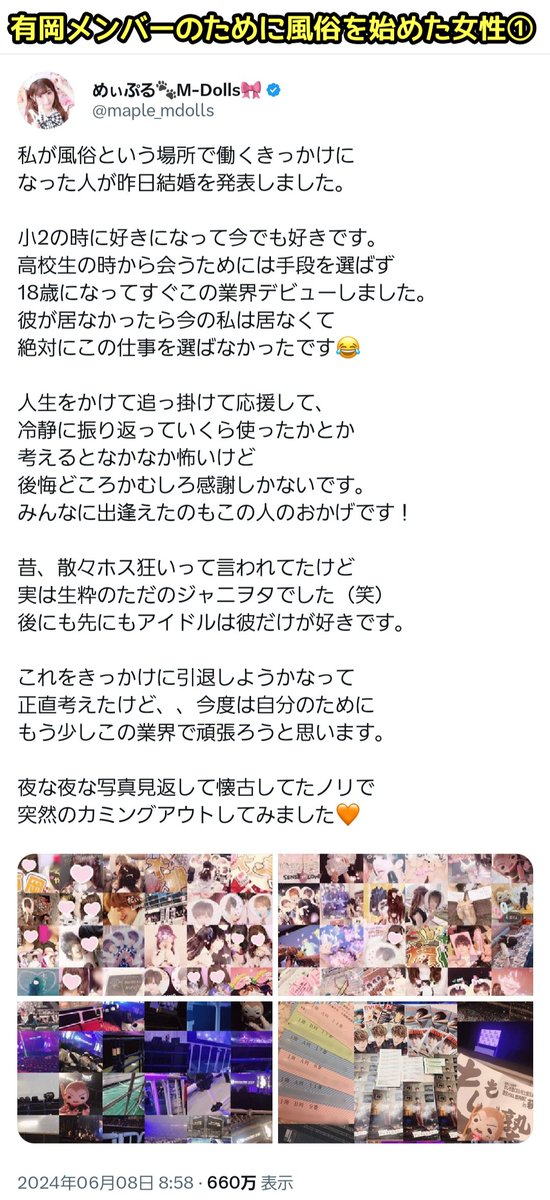 【大悲報】ジャニに貢ぐために風俗嬢になった女さん、推しが結婚して狂うWWWWWWWWWWWW