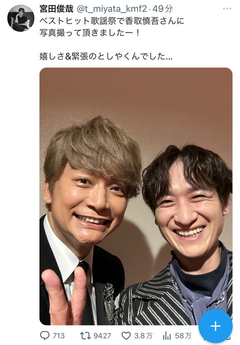 【朗報】香取慎吾さん、現役ジャニーズ(現スマイルアップ)とツーショットを撮れるほどになる (※画像あり)