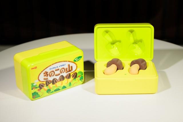 明治は17日、以前公式X(旧Twitter)で話題となった「きのこの山」の形をした架空イヤホンを実際に「同時翻訳機能付きのこの山イヤホン」として商品化することを発表。「きのこの山」「たけのこの里」をグローバルに拡大していくために同日、東京・明治京橋ビルで初開催した「KINOTAKE GLOBAL SUMMIT」で明かした。