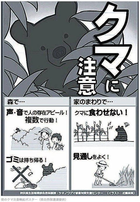 【画像】秋田県のクマ注意のポスター「かわいすぎて怖さ伝わらないのでは」 県側「確かにご指摘の通り」