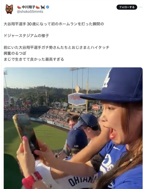 中川翔子(30)、現地で大谷のホームランを見て大興奮wwwwww (※画像あり)