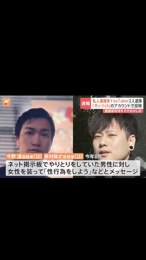 ガッツch『覚醒剤使ってエッチしよ♡』男性『よし!覚醒剤持ってきたぞ』ガッツch『はい逮捕』 2023年11月20日 最終更新日時 : 2023年11月20日 loki.5ch.net カープドラ6西川篤夢!「日本を代表する遊撃手になりたい」【ドラフト会議2025】 カープドラ5赤木晴哉!191cm最速153キロ!佛教大の本格派右腕!【ドラフト会議2025】 カープドラ4工藤泰己!159キロ北の剛腕!【ドラフト会議2025】 カープドラ3勝田成!近畿大163cmセカンド!菊池涼介の後継者候補!【ドラフト会議2025】 カープドラ2齊藤汰直!亜大152キロエース!【ドラフト会議2025】 カープドラ1平川蓮!187cmのスイッチヒッター!立石正広を外し2度目の重複も新井監督がクジを引き当てる!【ドラフト会議2025】 【カープ実況】ドラフト会議2025!ドラ1立石正広の獲得なるか 緒方孝市カープドラ3指名で青学出禁!澤﨑俊和の逆指名まで10年間スカウト出禁 【朗報】広島、攻守最強都市だったwww 【悲報】彼女「ごめん!俺くんの貯金、情報商材に使っちゃった」→…問い詰めたらギャン泣きされたんだが俺が悪いのか? ガッツch『覚醒剤使ってエッチしよ♡』男性『よし!覚醒剤持ってきたぞ』ガッツch『はい逮捕』 1:それでも動く名無し:2023/11/20(月) 19:15:17.06 警察「はいガッツch逮捕な」 4:それでも動く名無し:2023/11/20(月) 19:18:14.12 マスコミは早く家族にインタビューしろ 8:それでも動く名無し:2023/11/20(月) 19:24:37.10 2人逮捕されてたんやな 続きを読む 続きを見る カープドラ6西川篤夢!「日本を代表する遊撃手になりたい」【ドラフト会議2025】 カープドラ5赤木晴哉!191cm最速153キロ!佛教大の本格派右腕!【ドラフト会議2025】 カープドラ4工藤泰己!159キロ北の剛腕!【ドラフト会議2025】 カープドラ3勝田成!近畿大163cmセカンド!菊池涼介の後継者候補!【ドラフト会議2025】 カープドラ2齊藤汰直!亜大152キロエース!【ドラフト会議2025】 カープドラ1平川蓮!187cmのスイッチヒッター!立石正広を外し2度目の重複も新井監督がクジを引き当てる!【ドラフト会議2025】 【カープ実況】ドラフト会議2025!ドラ1立石正広の獲得なるか 緒方孝市カープドラ3指名で青学出禁!澤﨑俊和の逆指名まで10年間スカウト出禁 関連記事 関連記事はありません。
