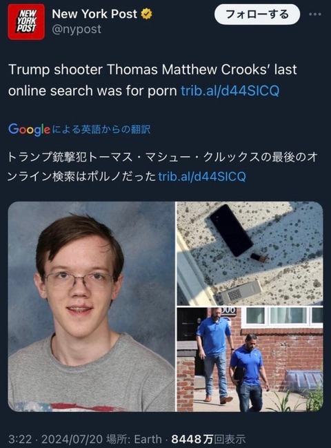 【画像】トランプ暗殺未遂犯、最後にエ□サイトを見ていたwwwwwwww 2024年7月25日 最終更新日時 : 2024年7月25日 loki.5ch.net カープドラ6西川篤夢!「日本を代表する遊撃手になりたい」【ドラフト会議2025】 カープドラ5赤木晴哉!191cm最速153キロ!佛教大の本格派右腕!【ドラフト会議2025】 カープドラ4工藤泰己!159キロ北の剛腕!【ドラフト会議2025】 カープドラ3勝田成!近畿大163cmセカンド!菊池涼介の後継者候補!【ドラフト会議2025】 カープドラ2齊藤汰直!亜大152キロエース!【ドラフト会議2025】 カープドラ1平川蓮!187cmのスイッチヒッター!立石正広を外し2度目の重複も新井監督がクジを引き当てる!【ドラフト会議2025】 【カープ実況】ドラフト会議2025!ドラ1立石正広の獲得なるか 緒方孝市カープドラ3指名で青学出禁!澤﨑俊和の逆指名まで10年間スカウト出禁 【朗報】広島、攻守最強都市だったwww 【悲報】彼女「ごめん!俺くんの貯金、情報商材に使っちゃった」→…問い詰めたらギャン泣きされたんだが俺が悪いのか? 【画像】トランプ暗殺未遂犯、最後にエ□サイトを見ていたwwwwwwww 1:以下、?ちゃんねるからVIPがお送りします:2024/07/23(火) 18:05:49.838 童貞だったんかな? 2:以下、?ちゃんねるからVIPがお送りします:2024/07/23(火) 18:06:22.978 やめてあげろ! 3:以下、?ちゃんねるからVIPがお送りします:2024/07/23(火) 18:06:35.508 オナニーを生きがいにできなかったのか 続きを読む 続きを見る カープドラ6西川篤夢!「日本を代表する遊撃手になりたい」【ドラフト会議2025】 カープドラ5赤木晴哉!191cm最速153キロ!佛教大の本格派右腕!【ドラフト会議2025】 カープドラ4工藤泰己!159キロ北の剛腕!【ドラフト会議2025】 カープドラ3勝田成!近畿大163cmセカンド!菊池涼介の後継者候補!【ドラフト会議2025】 カープドラ2齊藤汰直!亜大152キロエース!【ドラフト会議2025】 カープドラ1平川蓮!187cmのスイッチヒッター!立石正広を外し2度目の重複も新井監督がクジを引き当てる!【ドラフト会議2025】 【カープ実況】ドラフト会議2025!ドラ1立石正広の獲得なるか 緒方孝市カープドラ3指名で青学出禁!澤﨑俊和の逆指名まで10年間スカウト出禁 関連記事 関連記事はありません。