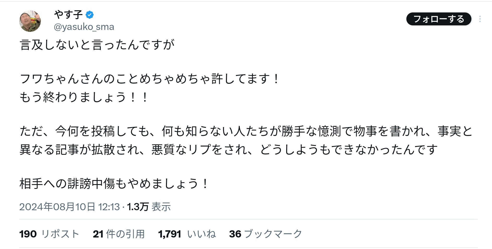 やす子「すごい悲しい」→フワ、全番組降板スポンサー撤退→やす子「フワちゃんを許します!」
