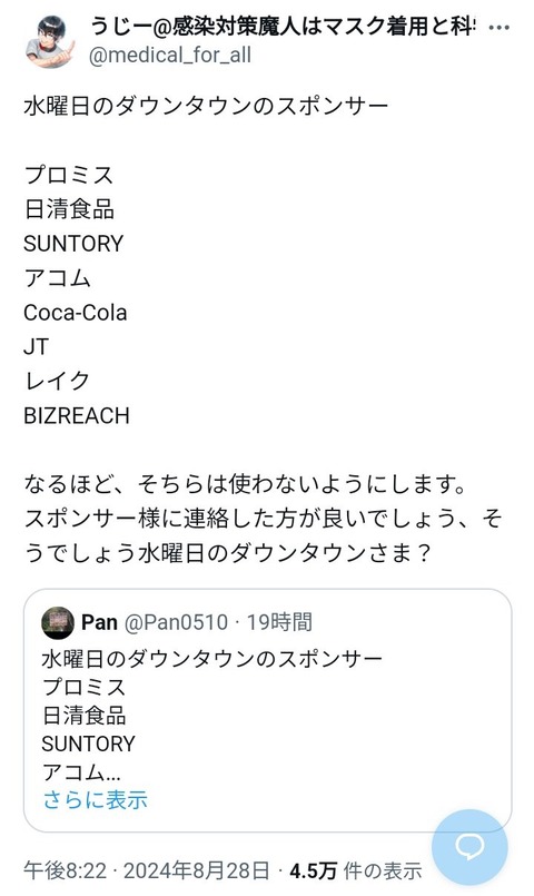 【悲報】水ダウに医療関係者が激怒、スポンサー不買運動まで発展してしまうwwwwwww