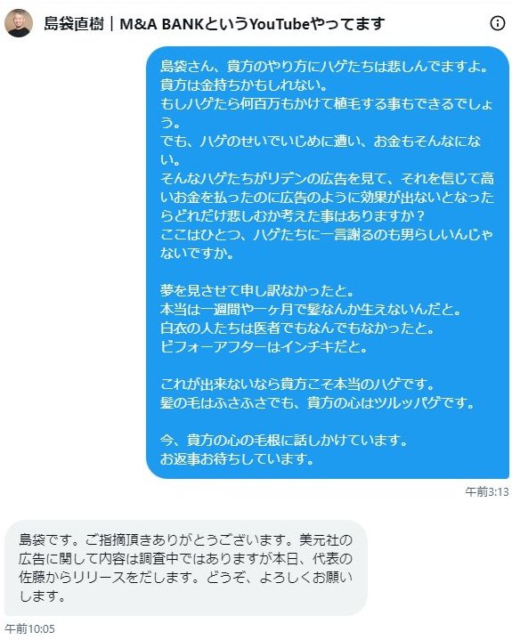 育毛剤の会社、明らかに虚偽の広告を出しハゲとZ李氏をブチギレさせて謝罪に追い込まれる