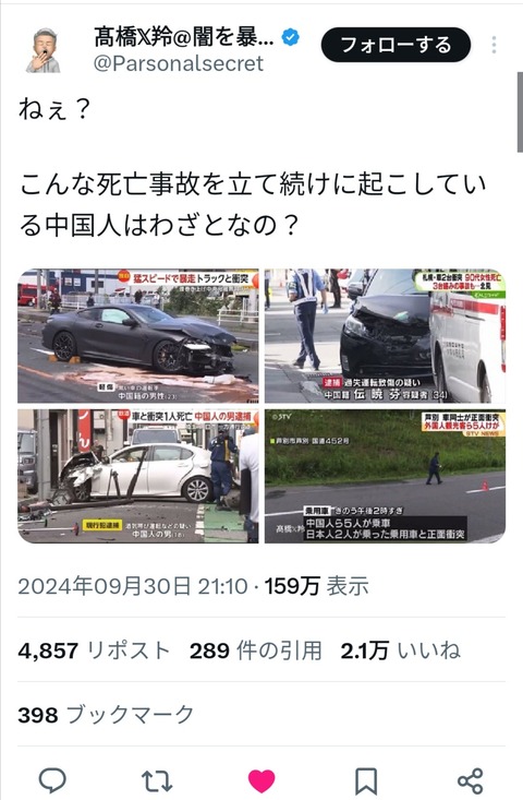 【画像】中国人、狂ったように日本人を轢き殺しまくる