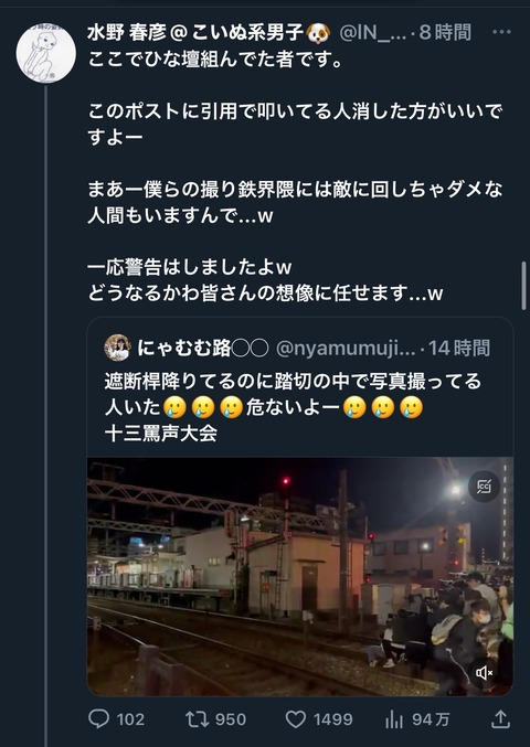【悲報】撮り鉄さん、バックにヤバい奴が居るのを匂わせてしまうwwwwwwwww