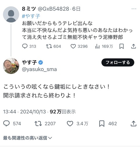 【画像】やす子 一般人のツイートにブチギレwwwwwwwwwww 2024年10月19日 最終更新日時 : 2024年10月19日 loki.5ch.net カープドラ6西川篤夢!「日本を代表する遊撃手になりたい」【ドラフト会議2025】 カープドラ5赤木晴哉!191cm最速153キロ!佛教大の本格派右腕!【ドラフト会議2025】 カープドラ4工藤泰己!159キロ北の剛腕!【ドラフト会議2025】 カープドラ3勝田成!近畿大163cmセカンド!菊池涼介の後継者候補!【ドラフト会議2025】 カープドラ2齊藤汰直!亜大152キロエース!【ドラフト会議2025】 カープドラ1平川蓮!187cmのスイッチヒッター!立石正広を外し2度目の重複も新井監督がクジを引き当てる!【ドラフト会議2025】 【カープ実況】ドラフト会議2025!ドラ1立石正広の獲得なるか 緒方孝市カープドラ3指名で青学出禁!澤﨑俊和の逆指名まで10年間スカウト出禁 【朗報】広島、攻守最強都市だったwww 【悲報】彼女「ごめん!俺くんの貯金、情報商材に使っちゃった」→…問い詰めたらギャン泣きされたんだが俺が悪いのか? 【画像】やす子 一般人のツイートにブチギレwwwwwwwwwww 1:以下、?ちゃんねるからVIPがお送りします:2024/10/18(金) 21:45:03.071 ID:gWdaXTFj0.net 3:以下、?ちゃんねるからVIPがお送りします:2024/10/18(金) 21:45:44.989 ID:zD7LxMuh0.net ブチギレと言うか諭してるな 続きを読む 続きを見る カープドラ6西川篤夢!「日本を代表する遊撃手になりたい」【ドラフト会議2025】 カープドラ5赤木晴哉!191cm最速153キロ!佛教大の本格派右腕!【ドラフト会議2025】 カープドラ4工藤泰己!159キロ北の剛腕!【ドラフト会議2025】 カープドラ3勝田成!近畿大163cmセカンド!菊池涼介の後継者候補!【ドラフト会議2025】 カープドラ2齊藤汰直!亜大152キロエース!【ドラフト会議2025】 カープドラ1平川蓮!187cmのスイッチヒッター!立石正広を外し2度目の重複も新井監督がクジを引き当てる!【ドラフト会議2025】 【カープ実況】ドラフト会議2025!ドラ1立石正広の獲得なるか 緒方孝市カープドラ3指名で青学出禁!澤﨑俊和の逆指名まで10年間スカウト出禁 関連記事 関連記事はありません。