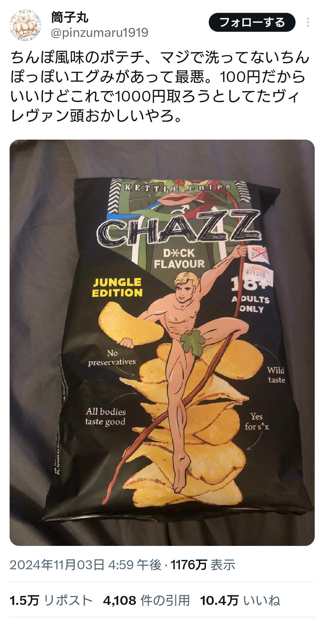 【画像】ち●こ味のポテチ、見つかるwwwwwwwww