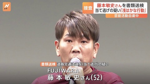 木下の元夫で、お笑いコンビ・FUJIWARAの藤本敏史は、10月に自家用車で当て逃げ事故を起こしたとして書類送検された。現在、活動を自粛しており、復帰の目処は立っていない。