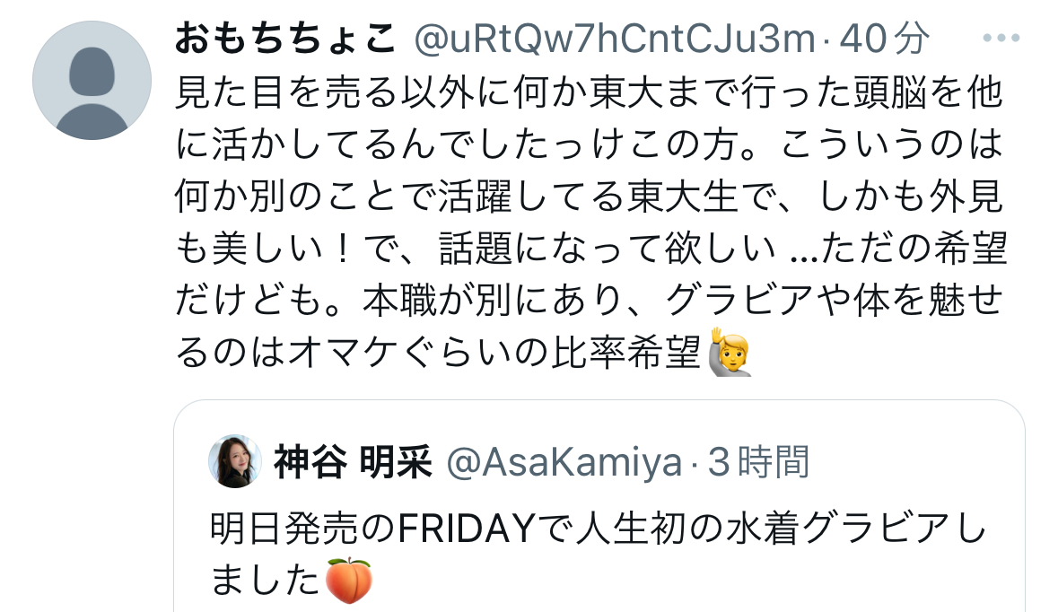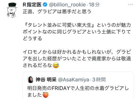 【画像】ミス東大、えっちな初めての水着グラビアを披露→なぜか批判の嵐にwwwwwwww 2023年12月7日 最終更新日時 : 2023年12月7日 loki.5ch.net カープドラ6西川篤夢!「日本を代表する遊撃手になりたい」【ドラフト会議2025】 カープドラ5赤木晴哉!191cm最速153キロ!佛教大の本格派右腕!【ドラフト会議2025】 カープドラ4工藤泰己!159キロ北の剛腕!【ドラフト会議2025】 カープドラ3勝田成!近畿大163cmセカンド!菊池涼介の後継者候補!【ドラフト会議2025】 カープドラ2齊藤汰直!亜大152キロエース!【ドラフト会議2025】 カープドラ1平川蓮!187cmのスイッチヒッター!立石正広を外し2度目の重複も新井監督がクジを引き当てる!【ドラフト会議2025】 【カープ実況】ドラフト会議2025!ドラ1立石正広の獲得なるか 緒方孝市カープドラ3指名で青学出禁!澤﨑俊和の逆指名まで10年間スカウト出禁 【朗報】広島、攻守最強都市だったwww 【悲報】彼女「ごめん!俺くんの貯金、情報商材に使っちゃった」→…問い詰めたらギャン泣きされたんだが俺が悪いのか? 【画像】ミス東大、えっちな初めての水着グラビアを披露→なぜか批判の嵐にwwwwwwww 1:それでも動く名無し:2023/12/07(木) 08:21:15.47 余計なお世話やろ 3:それでも動く名無し:2023/12/07(木) 08:21:56.74 嫉妬や 5:それでも動く名無し:2023/12/07(木) 08:22:21.48 マジで余計なお世話で草 続きを読む 続きを見る カープドラ6西川篤夢!「日本を代表する遊撃手になりたい」【ドラフト会議2025】 カープドラ5赤木晴哉!191cm最速153キロ!佛教大の本格派右腕!【ドラフト会議2025】 カープドラ4工藤泰己!159キロ北の剛腕!【ドラフト会議2025】 カープドラ3勝田成!近畿大163cmセカンド!菊池涼介の後継者候補!【ドラフト会議2025】 カープドラ2齊藤汰直!亜大152キロエース!【ドラフト会議2025】 カープドラ1平川蓮!187cmのスイッチヒッター!立石正広を外し2度目の重複も新井監督がクジを引き当てる!【ドラフト会議2025】 【カープ実況】ドラフト会議2025!ドラ1立石正広の獲得なるか 緒方孝市カープドラ3指名で青学出禁!澤﨑俊和の逆指名まで10年間スカウト出禁 関連記事 関連記事はありません。