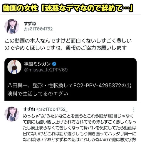 FC2PPVの出演女優「整形・性転換した八田與一」と言われてお気持ち表明 (※画像あり)