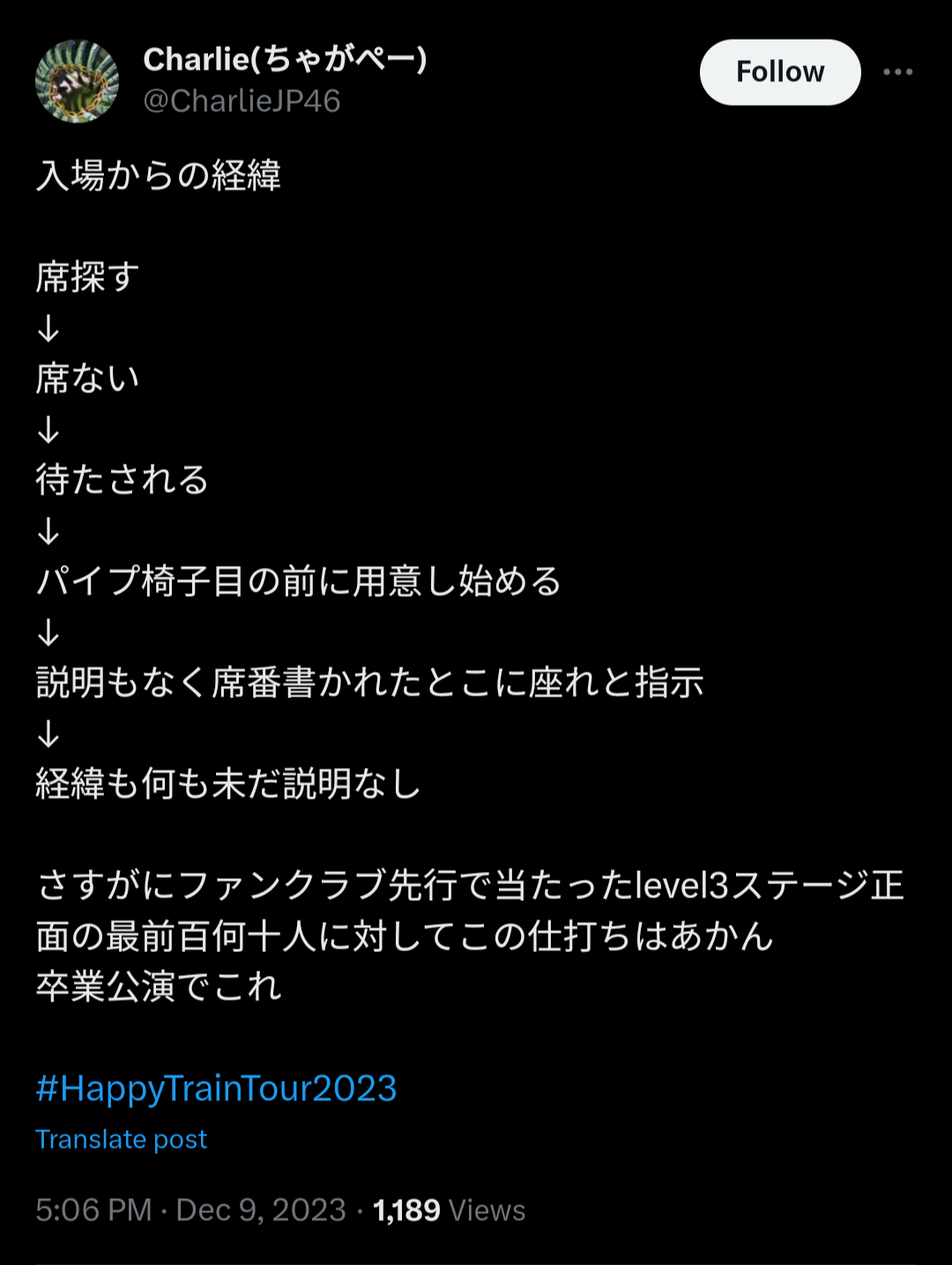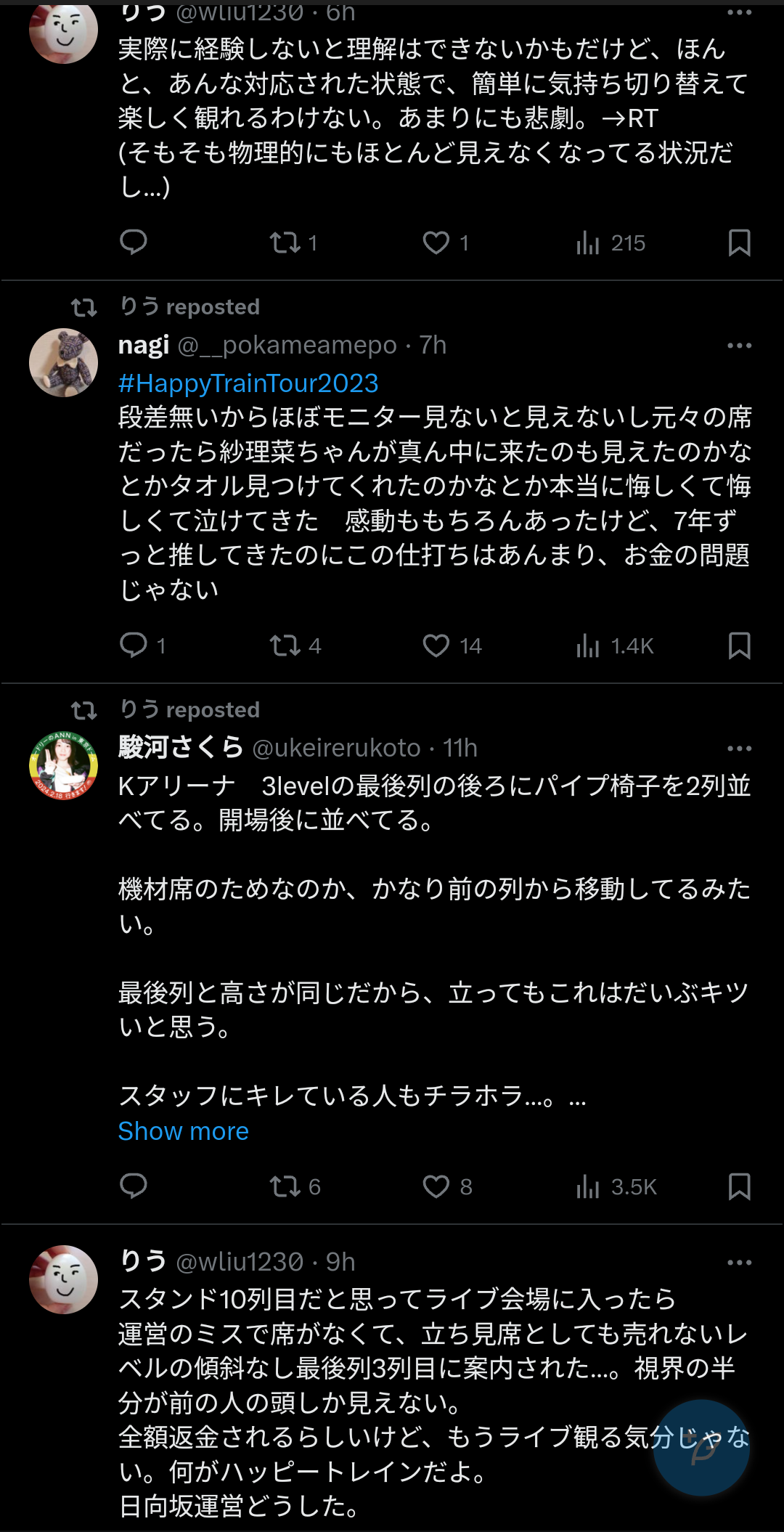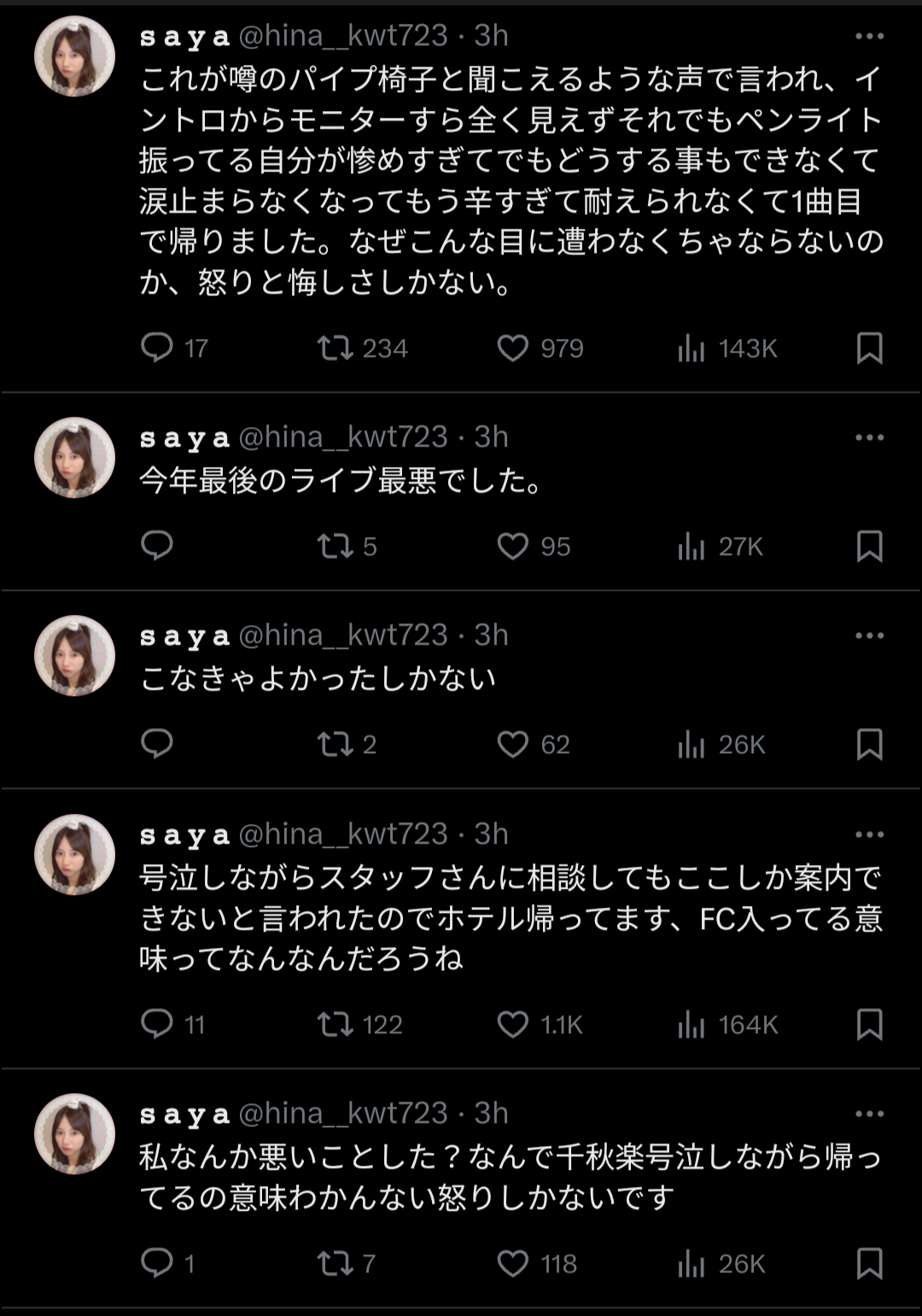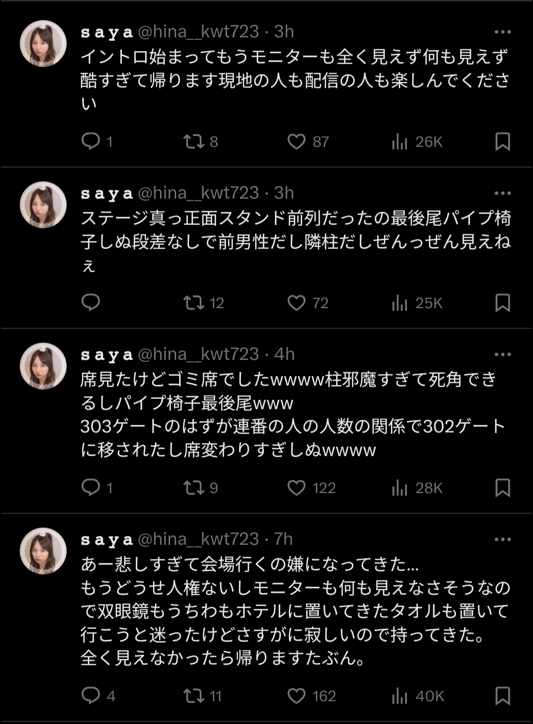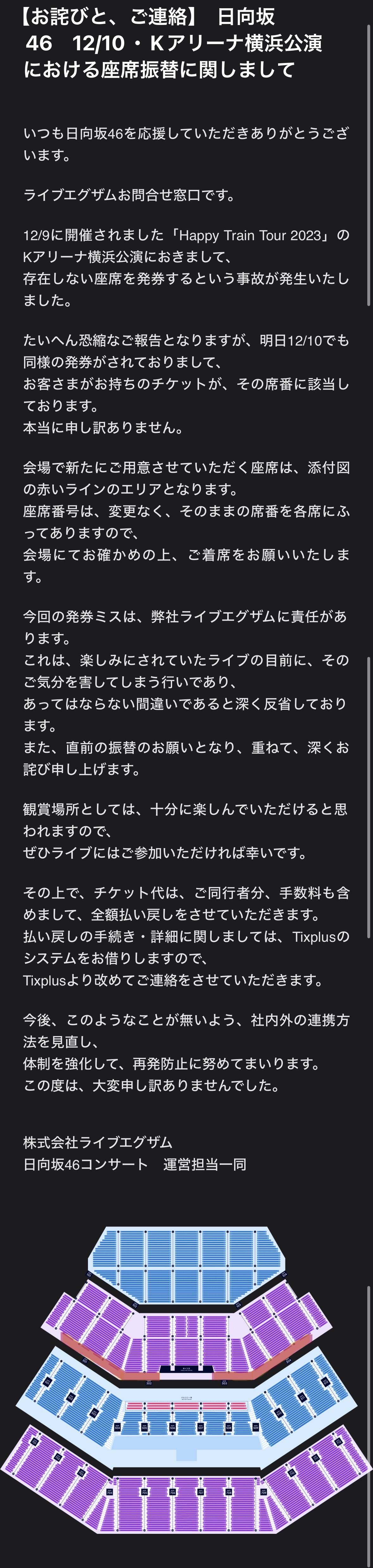 【炎上】日向坂Kアリーナパイプ椅子事件 運営の不手際で200人近くが座席無し