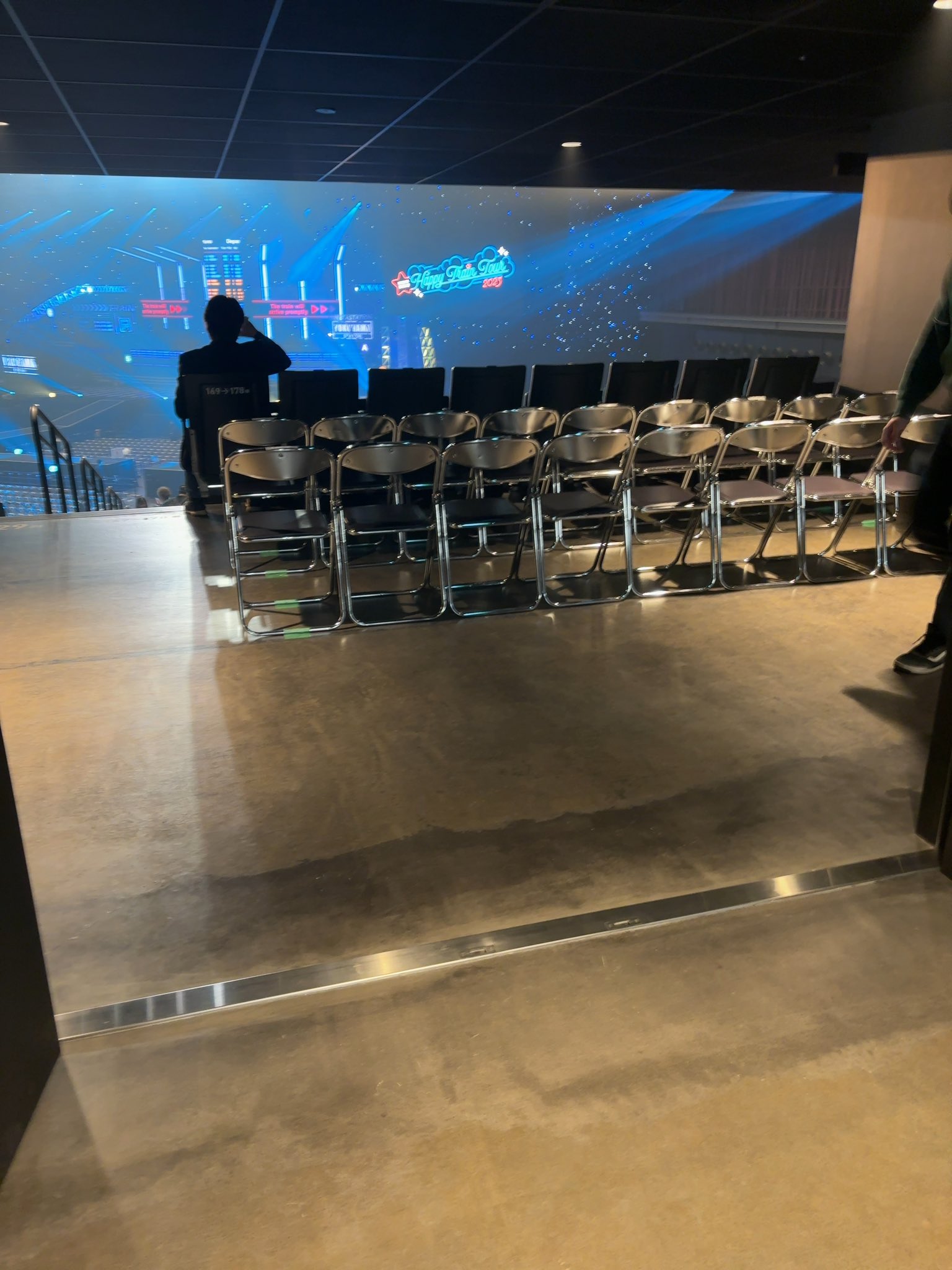 急遽用意された最後部のパイプ椅子に座らされ肉眼で見ること出来ず「レベル3の2列目だったのに」