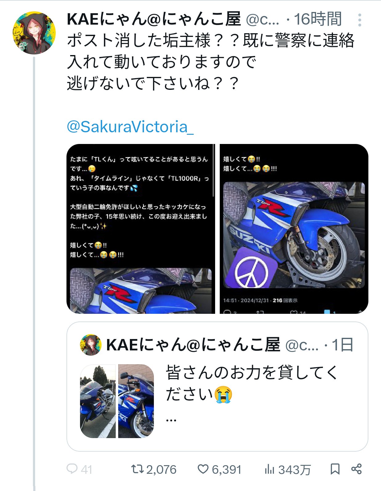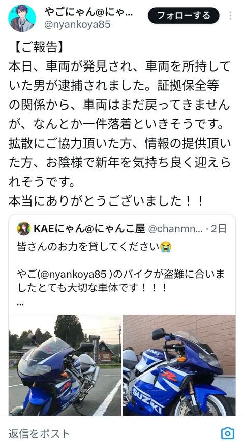 【悲報】女装コスプレイヤーさん、盗んだバイクをTwitterで自慢してしまい本日無事逮捕されるwwwwwwwww