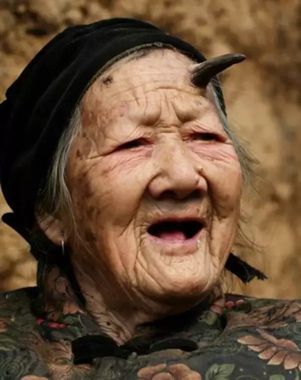 それはChenさんという107才の中国人女性。額の角は生まれつきではなく、最近の数年間で伸びて来たものだという。画像が投稿されている。医学的にはあり得ることだそう。