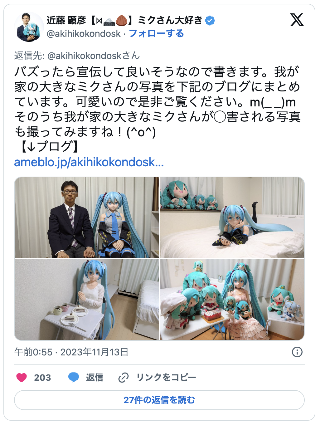 【悲報】初音ミクと結婚した人「今度我が家のミクが殺される写真も撮ってみますね(^○^)」
