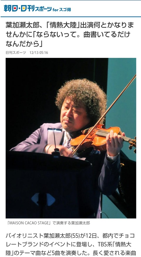 【ブチギレ】葉加瀬太郎「情熱大陸ゥ?出られねえよ!曲書いてるだけだろ!!」