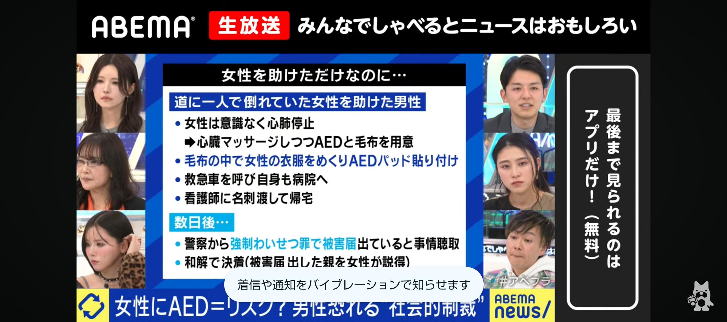 【悲報】道に倒れてた女性をAEDで救急救命した男性、強制わいせつ罪で被害届出される…
