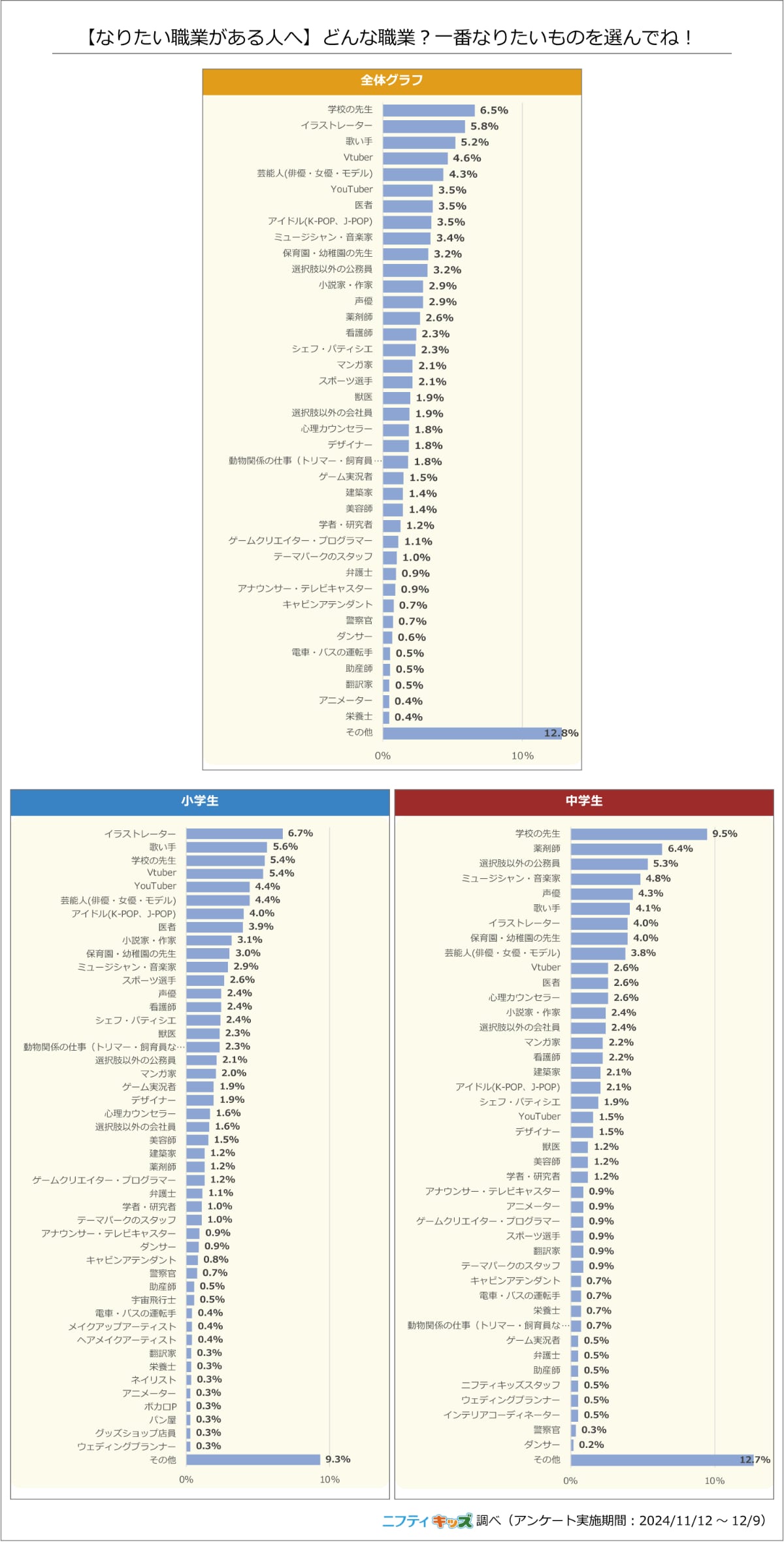 「小学生のなりたい職業」VTuberが4位に 1年で人気が急拡大(ニフティ調査)