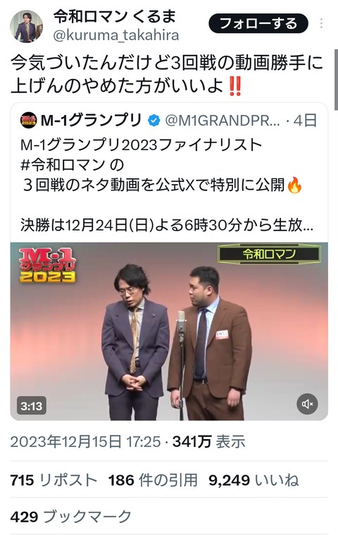 【悲報】お笑い芸人「M-1はネタを勝手に公開するな」