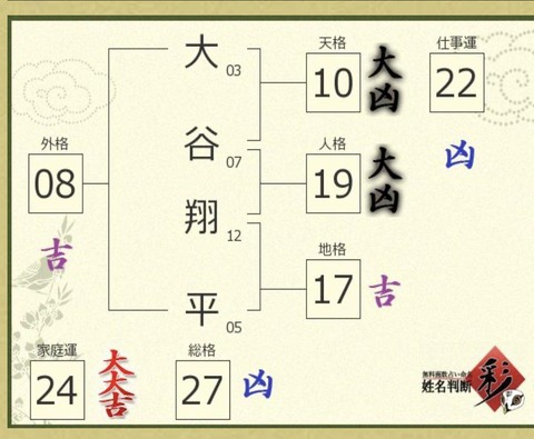 【悲報】大谷翔平さん、姓名判断の結果がひどいwwwwwwwwwww