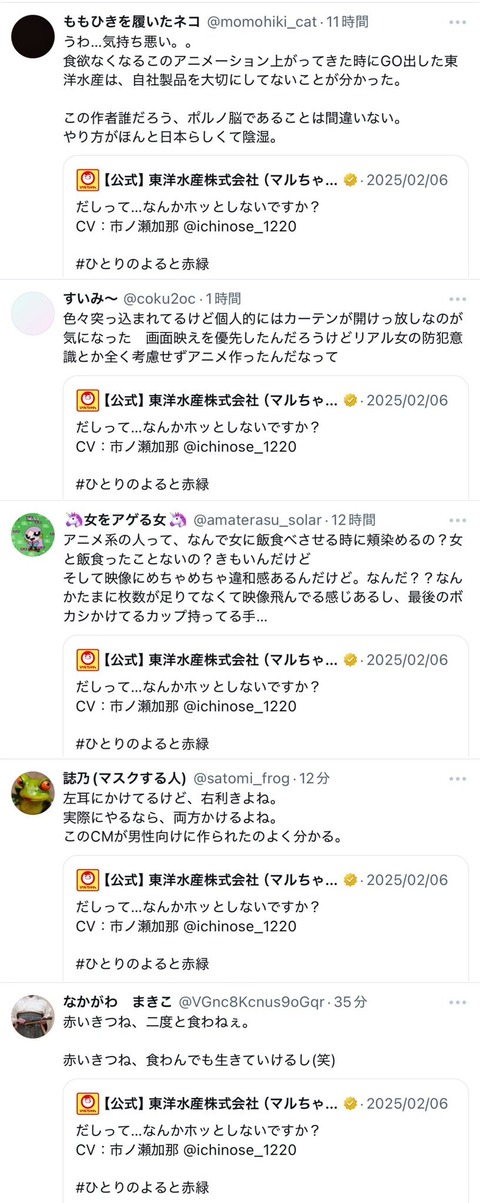 【炎上】『赤いきつね』のCM ポルノみたいで気持ち悪いと炎上wwwwwwwww 2025年2月16日 最終更新日時 : 2025年2月16日 loki.5ch.net カープドラ6西川篤夢!「日本を代表する遊撃手になりたい」【ドラフト会議2025】 カープドラ5赤木晴哉!191cm最速153キロ!佛教大の本格派右腕!【ドラフト会議2025】 カープドラ4工藤泰己!159キロ北の剛腕!【ドラフト会議2025】 カープドラ3勝田成!近畿大163cmセカンド!菊池涼介の後継者候補!【ドラフト会議2025】 カープドラ2齊藤汰直!亜大152キロエース!【ドラフト会議2025】 カープドラ1平川蓮!187cmのスイッチヒッター!立石正広を外し2度目の重複も新井監督がクジを引き当てる!【ドラフト会議2025】 【カープ実況】ドラフト会議2025!ドラ1立石正広の獲得なるか 緒方孝市カープドラ3指名で青学出禁!澤﨑俊和の逆指名まで10年間スカウト出禁 【朗報】広島、攻守最強都市だったwww 【悲報】彼女「ごめん!俺くんの貯金、情報商材に使っちゃった」→…問い詰めたらギャン泣きされたんだが俺が悪いのか? 【炎上】『赤いきつね』のCM ポルノみたいで気持ち悪いと炎上wwwwwwwww 1: (邪馬台国) [US]:2025/02/16(日) 13:27:37.49 BE:977790669-2BP(2000) 画像 CM動画 7: 警備員[Lv.50](福岡県) [US]:2025/02/16(日) 13:31:01.51 ID:FnqQiPlr0 発狂しすぎやろw 続きを読む 続きを見る カープドラ6西川篤夢!「日本を代表する遊撃手になりたい」【ドラフト会議2025】 カープドラ5赤木晴哉!191cm最速153キロ!佛教大の本格派右腕!【ドラフト会議2025】 カープドラ4工藤泰己!159キロ北の剛腕!【ドラフト会議2025】 カープドラ3勝田成!近畿大163cmセカンド!菊池涼介の後継者候補!【ドラフト会議2025】 カープドラ2齊藤汰直!亜大152キロエース!【ドラフト会議2025】 カープドラ1平川蓮!187cmのスイッチヒッター!立石正広を外し2度目の重複も新井監督がクジを引き当てる!【ドラフト会議2025】 【カープ実況】ドラフト会議2025!ドラ1立石正広の獲得なるか 緒方孝市カープドラ3指名で青学出禁!澤﨑俊和の逆指名まで10年間スカウト出禁 関連記事 関連記事はありません。