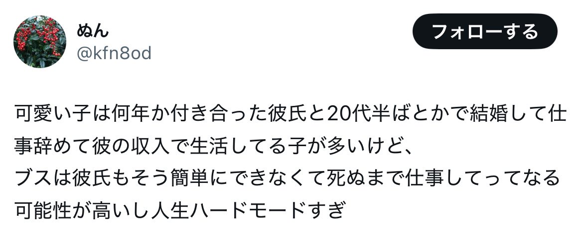 まんさん「女はブスに生まれたら一生働かないといけないの」