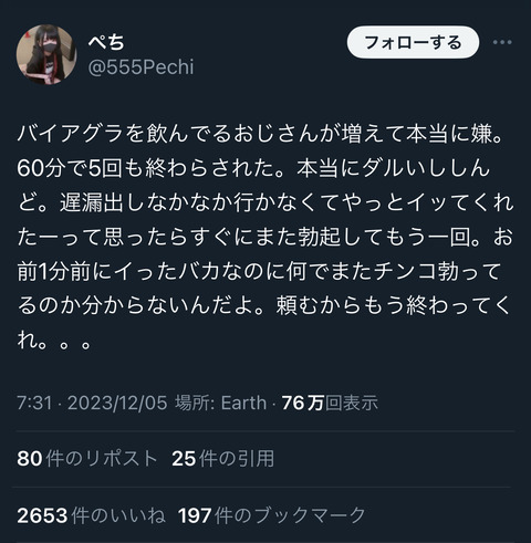 【悲報】風俗嬢さん、バイアグラおじさんに咽び泣く。。。