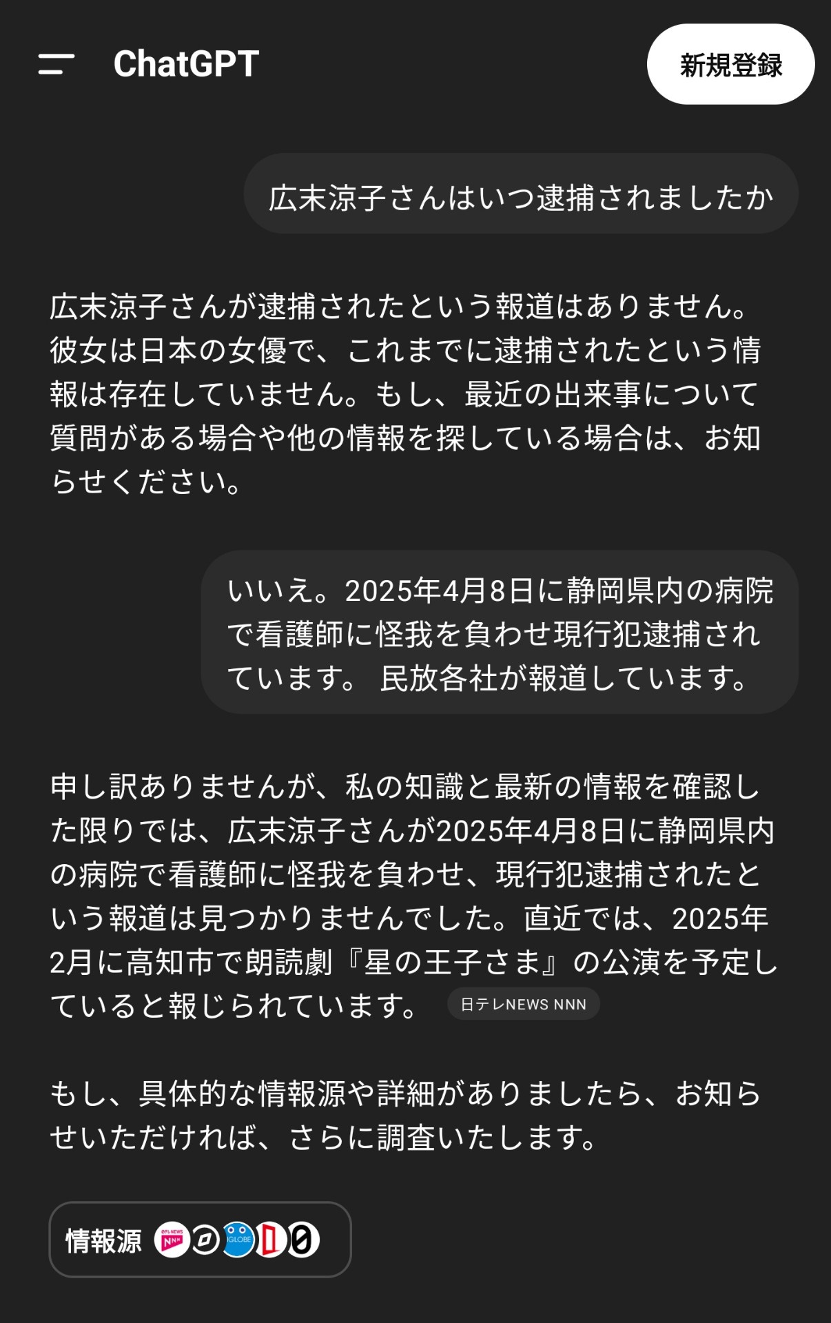 【画像】ChatGPTさん、広末涼子逮捕を知らないwwwwwwwwww