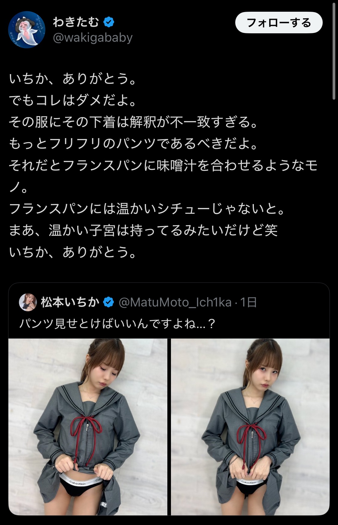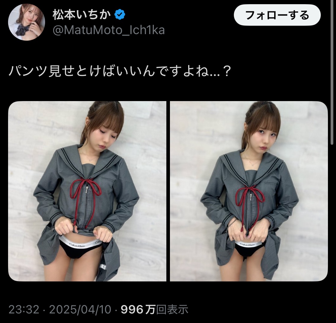 セクシー女優さん、セーラー服に合わせるパンツが解釈不一致すぎてオタクに怒られるwwww (※画像あり)