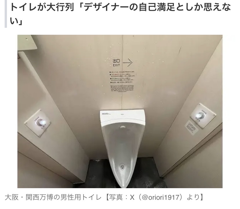 万博で物議醸すトイレ「舐めてんのかと思った」 なぜこの仕様に? ネットも「デザインの失敗」指摘