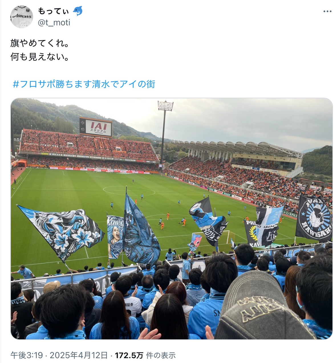 【悲報】一般客「Jリーグは旗やめてくれ。何も見えない。」→サポーター怒りの170万閲覧wwwwwwww
