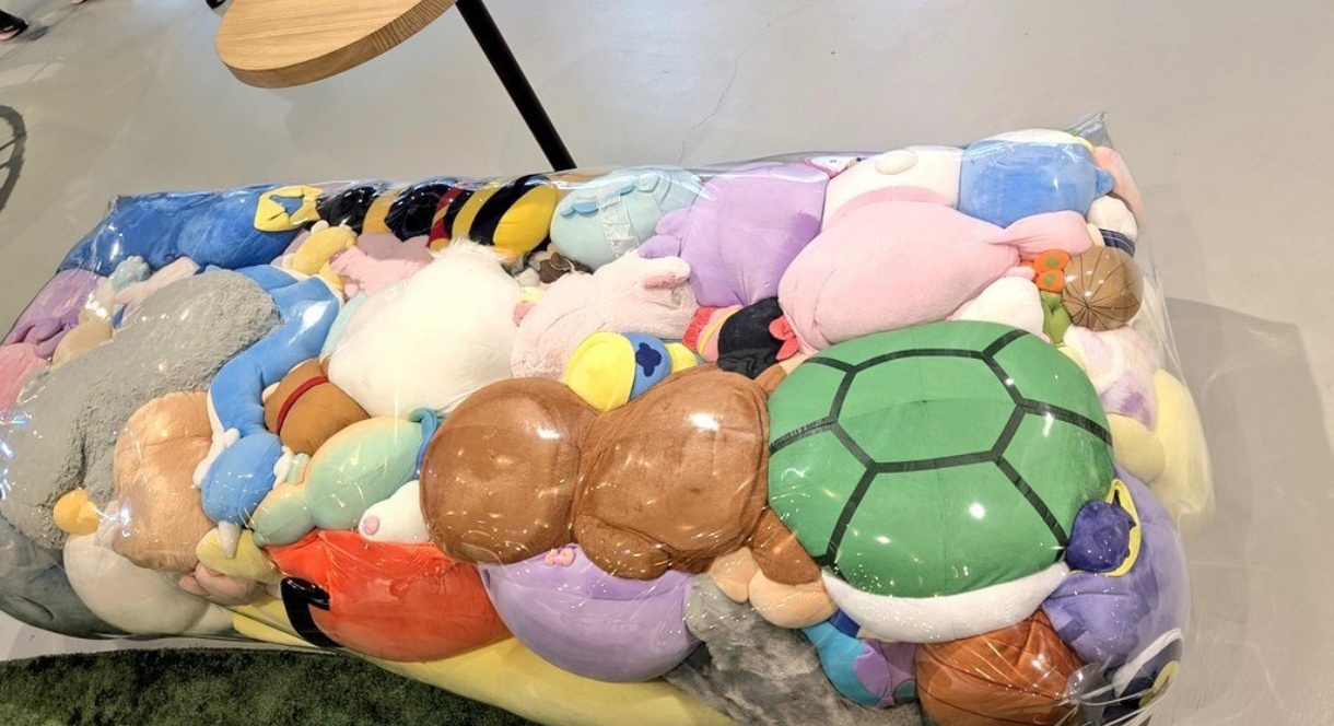 大阪万博で「ポケモンのぬいぐるみをビニール袋にぎゅうぎゅう詰めにしてベンチにする」という奇行が発見される
