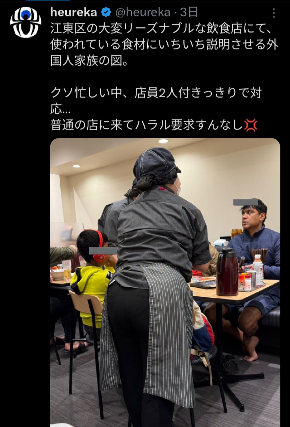 【画像】イスラム家族「これは豚肉使用してますか?」いちいち店員に説明させるwwwwww