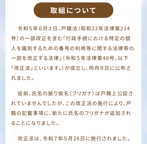今までは慣例的に読み方決めてただけで法的には日本人の氏名は漢字だけで「読み方(フリガナ)」はなかった
