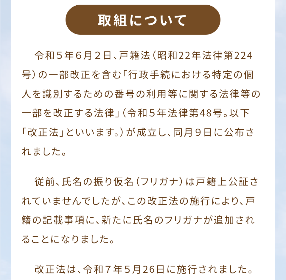 今までは慣例的に読み方決めてただけで法的には日本人の氏名は漢字だけで「読み方(フリガナ)」はなかった