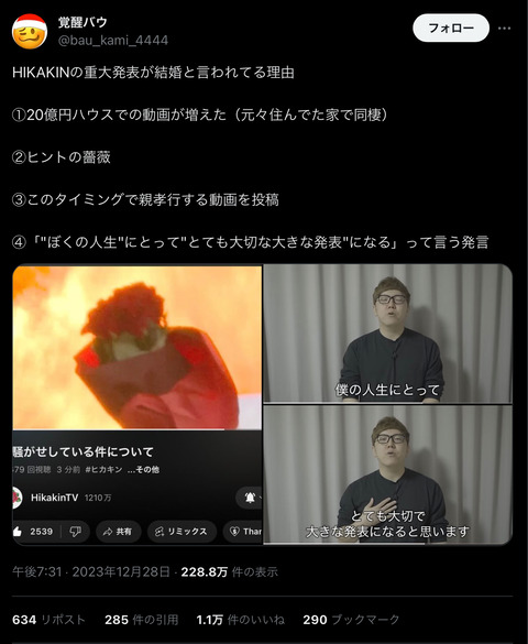【悲報】HIKAKINさん、結婚匂わせをしてしまう