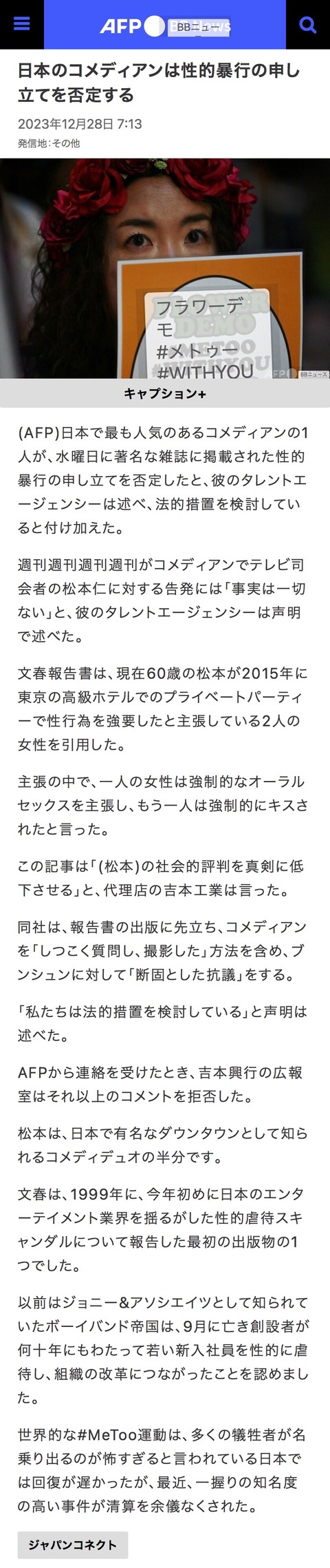 【悲報】 松本人志さん、大手海外メディア「AFP通信」デビューwwwwwwwww