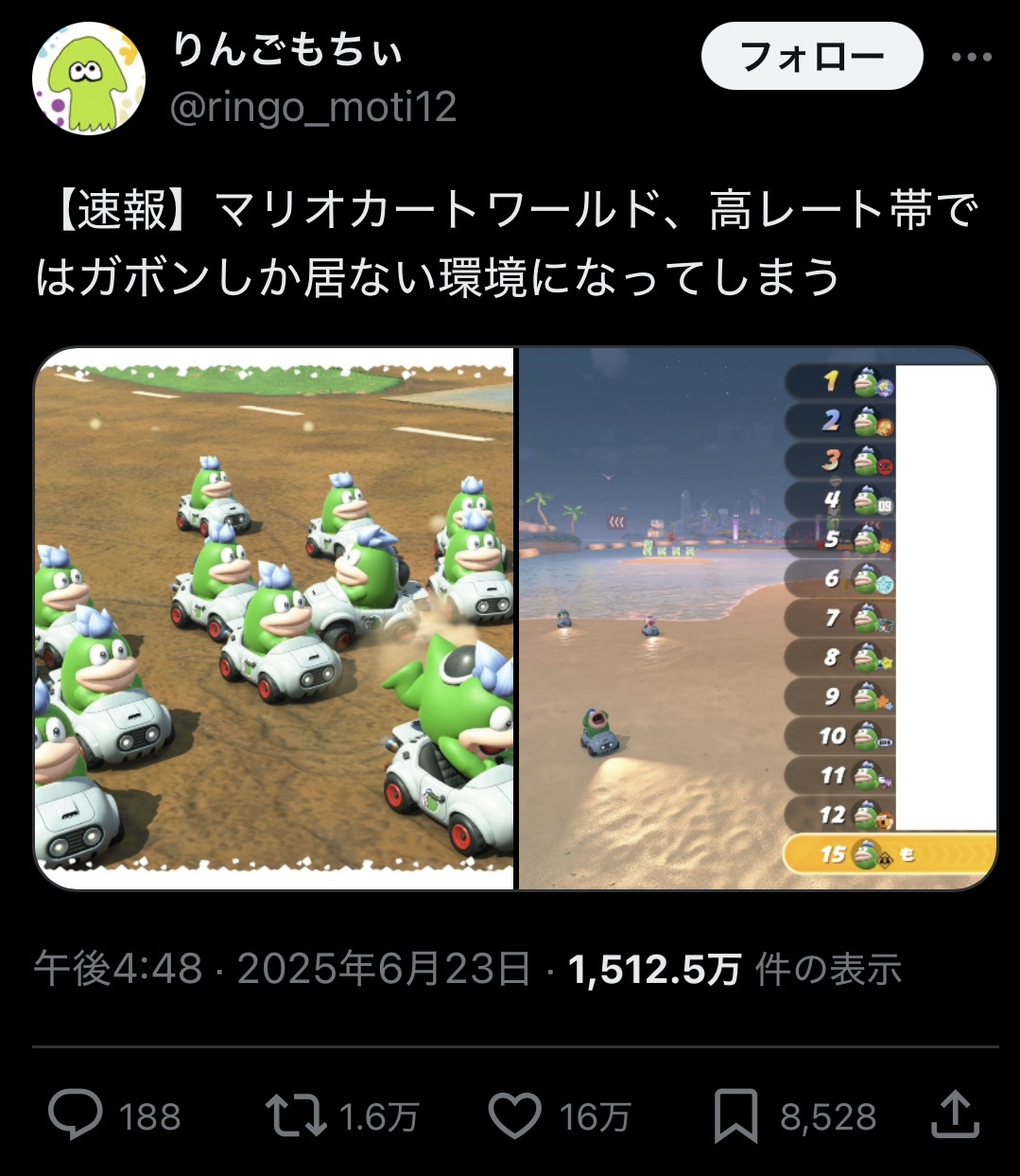 【悲報】マリオカート新作、謎の強キャラに全てを蹂躙されるwwww (※画像あり) 2025年6月25日 最終更新日時 : 2025年6月25日 loki.5ch.net カープドラ6西川篤夢!「日本を代表する遊撃手になりたい」【ドラフト会議2025】 カープドラ5赤木晴哉!191cm最速153キロ!佛教大の本格派右腕!【ドラフト会議2025】 カープドラ4工藤泰己!159キロ北の剛腕!【ドラフト会議2025】 カープドラ3勝田成!近畿大163cmセカンド!菊池涼介の後継者候補!【ドラフト会議2025】 カープドラ2齊藤汰直!亜大152キロエース!【ドラフト会議2025】 カープドラ1平川蓮!187cmのスイッチヒッター!立石正広を外し2度目の重複も新井監督がクジを引き当てる!【ドラフト会議2025】 【カープ実況】ドラフト会議2025!ドラ1立石正広の獲得なるか 緒方孝市カープドラ3指名で青学出禁!澤﨑俊和の逆指名まで10年間スカウト出禁 【朗報】広島、攻守最強都市だったwww 【悲報】彼女「ごめん!俺くんの貯金、情報商材に使っちゃった」→…問い詰めたらギャン泣きされたんだが俺が悪いのか? 【悲報】マリオカート新作、謎の強キャラに全てを蹂躙されるwwww (※画像あり) 1:それでも動く名無し:2025/06/25(水) 13:43:12.08 ID:cc5+mkQod 3:それでも動く名無し:2025/06/25(水) 13:48:00.84 ID:NmjOQoFo0 牛は? 4:それでも動く名無し:2025/06/25(水) 13:48:19.64 ID:71JMT/ZM0 ガボンカートワールド 続きを読む 続きを見る カープドラ6西川篤夢!「日本を代表する遊撃手になりたい」【ドラフト会議2025】 カープドラ5赤木晴哉!191cm最速153キロ!佛教大の本格派右腕!【ドラフト会議2025】 カープドラ4工藤泰己!159キロ北の剛腕!【ドラフト会議2025】 カープドラ3勝田成!近畿大163cmセカンド!菊池涼介の後継者候補!【ドラフト会議2025】 カープドラ2齊藤汰直!亜大152キロエース!【ドラフト会議2025】 カープドラ1平川蓮!187cmのスイッチヒッター!立石正広を外し2度目の重複も新井監督がクジを引き当てる!【ドラフト会議2025】 【カープ実況】ドラフト会議2025!ドラ1立石正広の獲得なるか 緒方孝市カープドラ3指名で青学出禁!澤﨑俊和の逆指名まで10年間スカウト出禁 関連記事 関連記事はありません。