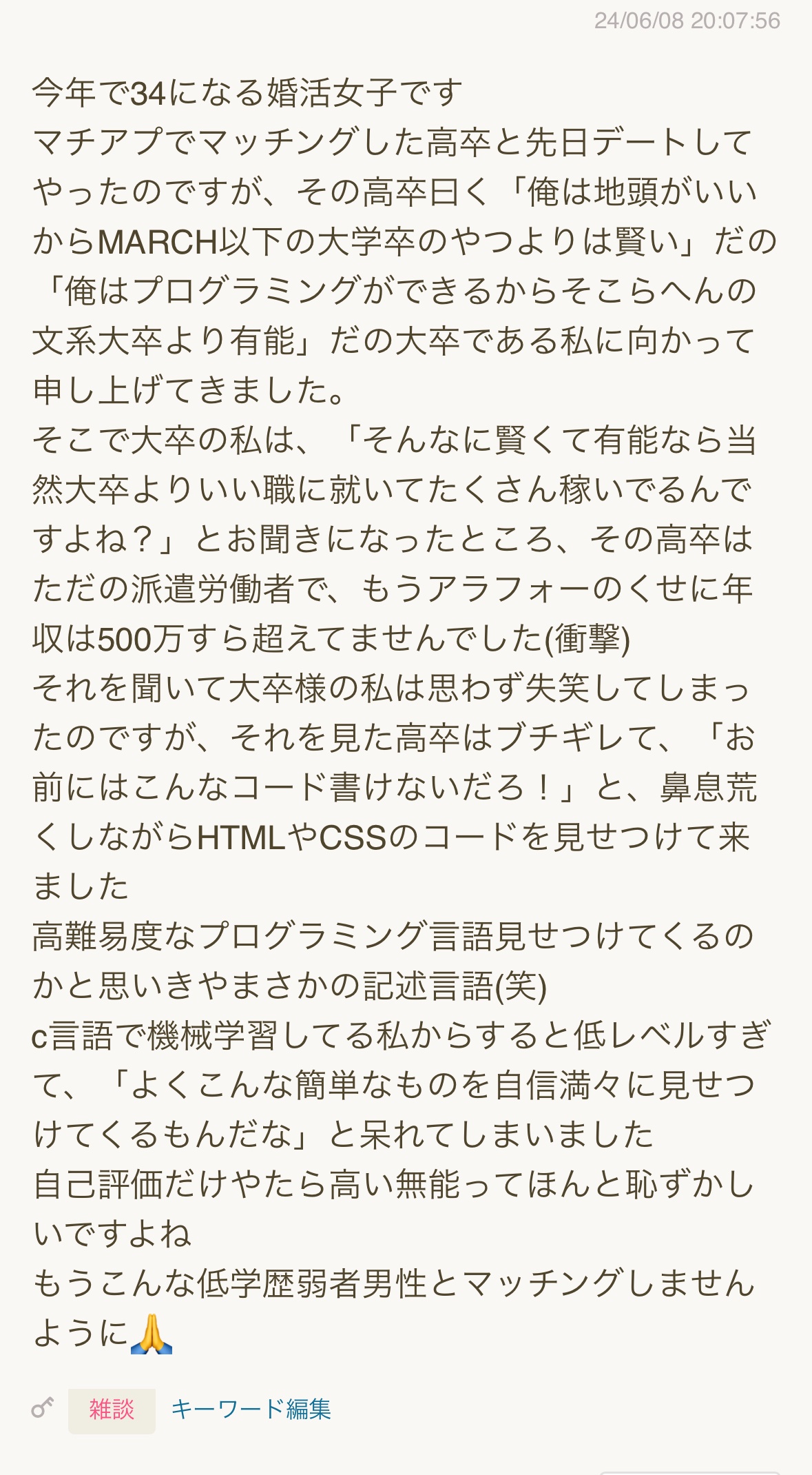 大卒女さん「なんで高卒って低学歴のくせに自分のこと頭いいと思ってるの?」→炎上🔥wwwwwwwwww