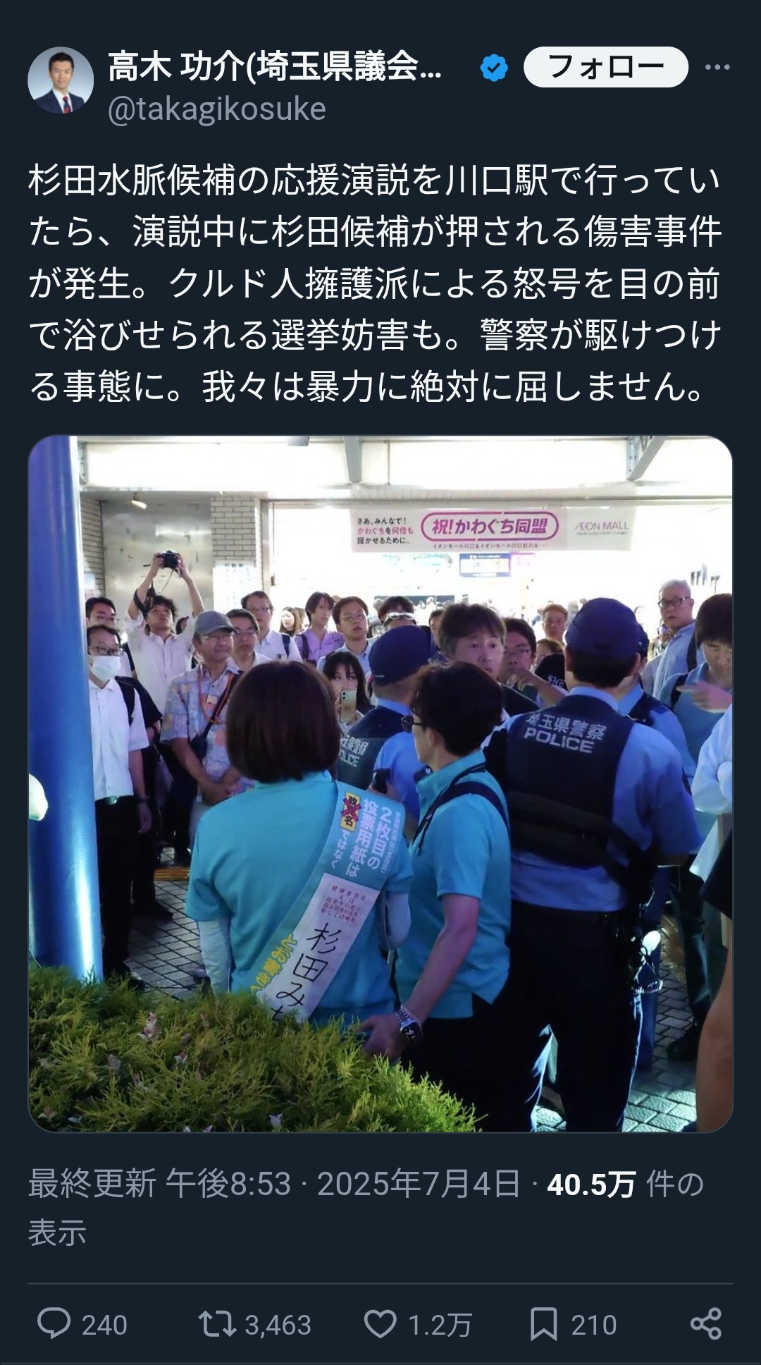 【悲報】杉田水脈、演説中に傷害事件発生wwwwwwwwwwwwwwwwwwwwwwwwwwwwwwwwwwww