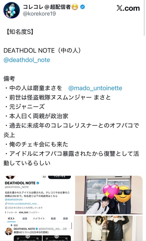【速報】デスドルノートの中の人、晒されるwwwwwwwww 2025年9月10日 最終更新日時 : 2025年9月10日 loki.5ch.net カープドラ6西川篤夢!「日本を代表する遊撃手になりたい」【ドラフト会議2025】 カープドラ5赤木晴哉!191cm最速153キロ!佛教大の本格派右腕!【ドラフト会議2025】 カープドラ4工藤泰己!159キロ北の剛腕!【ドラフト会議2025】 カープドラ3勝田成!近畿大163cmセカンド!菊池涼介の後継者候補!【ドラフト会議2025】 カープドラ2齊藤汰直!亜大152キロエース!【ドラフト会議2025】 カープドラ1平川蓮!187cmのスイッチヒッター!立石正広を外し2度目の重複も新井監督がクジを引き当てる!【ドラフト会議2025】 【カープ実況】ドラフト会議2025!ドラ1立石正広の獲得なるか 緒方孝市カープドラ3指名で青学出禁!澤﨑俊和の逆指名まで10年間スカウト出禁 【朗報】広島、攻守最強都市だったwww 【悲報】彼女「ごめん!俺くんの貯金、情報商材に使っちゃった」→…問い詰めたらギャン泣きされたんだが俺が悪いのか? 【速報】デスドルノートの中の人、晒されるwwwwwwwww 1:それでも動く名無し:2025/09/10(水) 13:37:40.72 ID:KJ+vflio0 まさかこいつやったとは… 続きを読む 続きを見る カープドラ6西川篤夢!「日本を代表する遊撃手になりたい」【ドラフト会議2025】 カープドラ5赤木晴哉!191cm最速153キロ!佛教大の本格派右腕!【ドラフト会議2025】 カープドラ4工藤泰己!159キロ北の剛腕!【ドラフト会議2025】 カープドラ3勝田成!近畿大163cmセカンド!菊池涼介の後継者候補!【ドラフト会議2025】 カープドラ2齊藤汰直!亜大152キロエース!【ドラフト会議2025】 カープドラ1平川蓮!187cmのスイッチヒッター!立石正広を外し2度目の重複も新井監督がクジを引き当てる!【ドラフト会議2025】 【カープ実況】ドラフト会議2025!ドラ1立石正広の獲得なるか 緒方孝市カープドラ3指名で青学出禁!澤﨑俊和の逆指名まで10年間スカウト出禁 関連記事 ドジャース、3連勝で4カードぶり勝ち越し 大谷翔平が4戦連続安打のダメ押し適時打 テオスカー22号&23号など4発快勝 糸井とか言う 頭さえ良ければ大谷になってた選手
