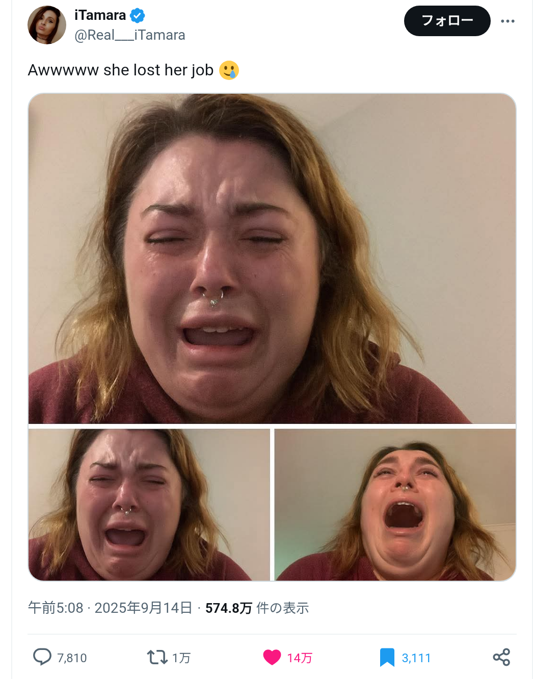 チャーリー・カークの死を祝福した女性、解雇されて泣くwwwwwwwwwwwwwwwwwwww
