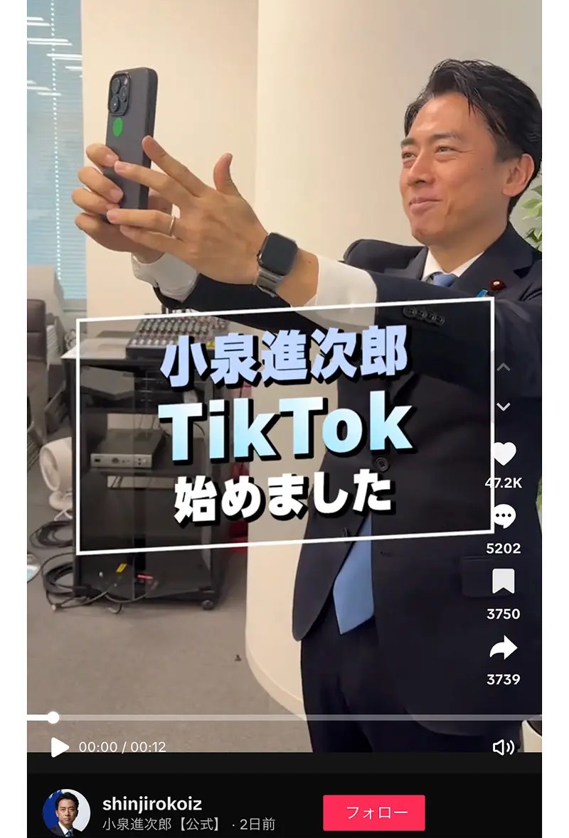 10月21日までに、小泉氏が自身の公式TikTokアカウントを開設し、初投稿。自撮りし、「皆さんこんにちは。小泉進次郎です。総裁選の出馬表明会見を終えたところです。国民の皆さんとともに立て直す。これからどうぞよろしくお願いします」と、挨拶する、なんてことのない動画であったが、コメント欄には批判が殺到した。