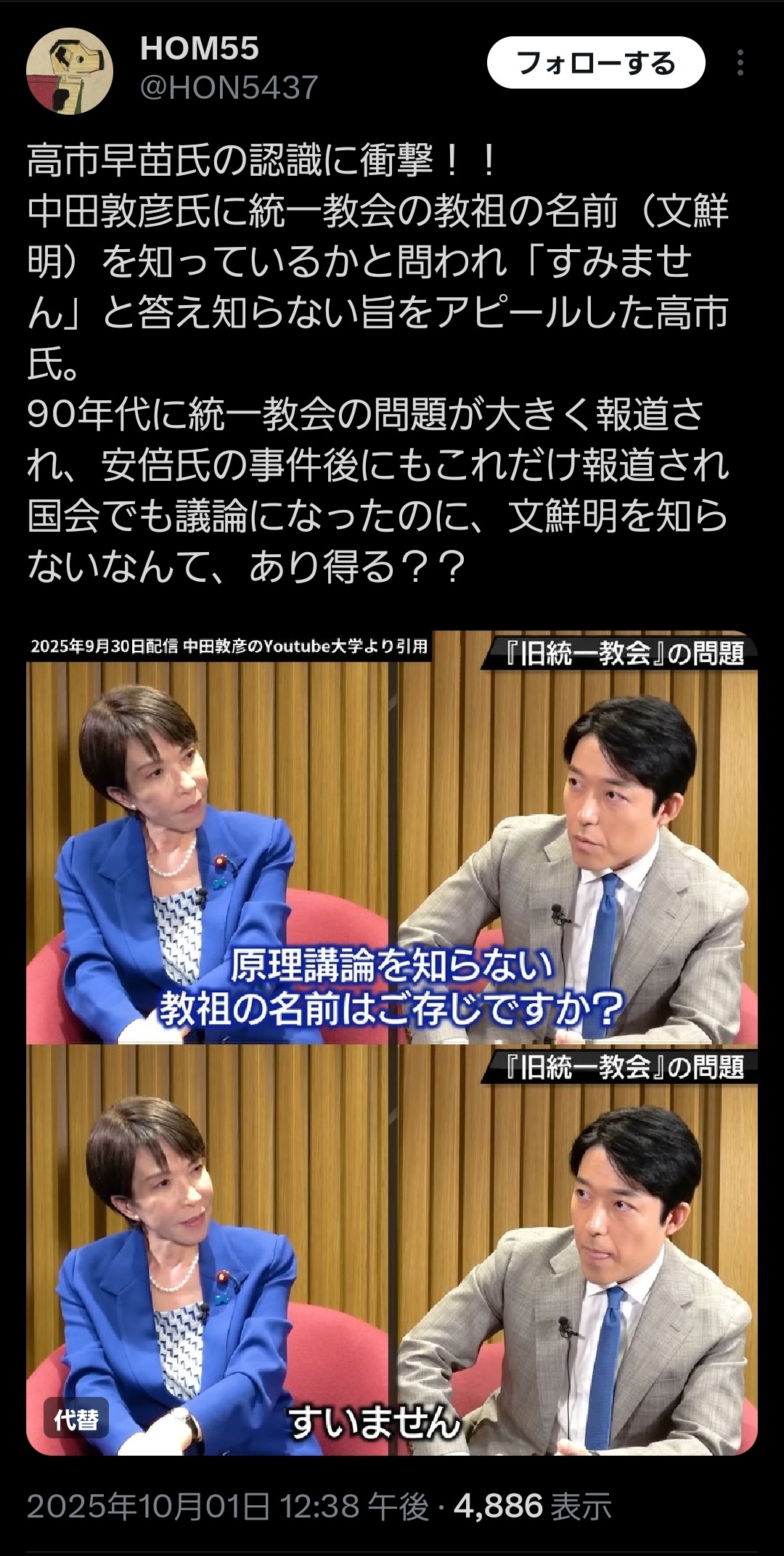 【朗報】高市早苗🏺「統一教会の教祖?知りません」 2025年10月2日 最終更新日時 : 2025年10月2日 loki.5ch.net カープドラ6西川篤夢!「日本を代表する遊撃手になりたい」【ドラフト会議2025】 カープドラ5赤木晴哉!191cm最速153キロ!佛教大の本格派右腕!【ドラフト会議2025】 カープドラ4工藤泰己!159キロ北の剛腕!【ドラフト会議2025】 カープドラ3勝田成!近畿大163cmセカンド!菊池涼介の後継者候補!【ドラフト会議2025】 カープドラ2齊藤汰直!亜大152キロエース!【ドラフト会議2025】 カープドラ1平川蓮!187cmのスイッチヒッター!立石正広を外し2度目の重複も新井監督がクジを引き当てる!【ドラフト会議2025】 【カープ実況】ドラフト会議2025!ドラ1立石正広の獲得なるか 緒方孝市カープドラ3指名で青学出禁!澤﨑俊和の逆指名まで10年間スカウト出禁 【朗報】広島、攻守最強都市だったwww 【悲報】彼女「ごめん!俺くんの貯金、情報商材に使っちゃった」→…問い詰めたらギャン泣きされたんだが俺が悪いのか? 【朗報】高市早苗🏺「統一教会の教祖?知りません」 1:それでも動く名無し:2025/10/01(水) 18:50:40.37 ID:E+uUlUBM0 クリーンやね 2:それでも動く名無し:2025/10/01(水) 18:51:46.51 ID:cgVGN78S0 嘘が下手やねえ 3:それでも動く名無し:2025/10/01(水) 18:52:41.78 ID:FxRpqAMo0 たまげなければセーフやから 続きを読む 続きを見る カープドラ6西川篤夢!「日本を代表する遊撃手になりたい」【ドラフト会議2025】 カープドラ5赤木晴哉!191cm最速153キロ!佛教大の本格派右腕!【ドラフト会議2025】 カープドラ4工藤泰己!159キロ北の剛腕!【ドラフト会議2025】 カープドラ3勝田成!近畿大163cmセカンド!菊池涼介の後継者候補!【ドラフト会議2025】 カープドラ2齊藤汰直!亜大152キロエース!【ドラフト会議2025】 カープドラ1平川蓮!187cmのスイッチヒッター!立石正広を外し2度目の重複も新井監督がクジを引き当てる!【ドラフト会議2025】 【カープ実況】ドラフト会議2025!ドラ1立石正広の獲得なるか 緒方孝市カープドラ3指名で青学出禁!澤﨑俊和の逆指名まで10年間スカウト出禁 関連記事 広島カープ『20年ぶり最下位』を回避!ヤクルト敗戦で5位確定 【速報】高市早苗「神社をなんと思っとるんでしょうか?私、高市早苗、日本をかけがえのない国にしてきたこの古来の伝統を守るために体を張ります」 【鹿発言】ネットではパヨ、政党では共産党が怒り「外国人に対する偏見、排外主義的な議論をあおり立てるのは大きな問題」高市早苗「自分なりに確認をした」