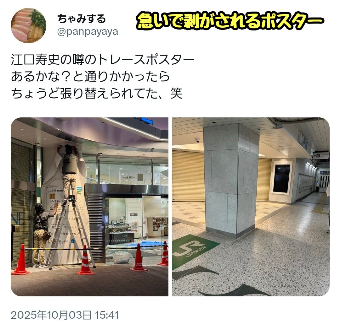 今回の炎上を受けてイベントを主催するルミネが迅速にポスターを剥がす火消し対応を行っています。https://x.com/tkzwgrs/status/1974229387764773236